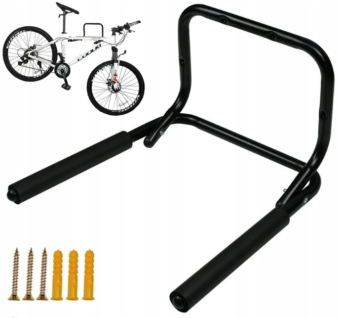 Універсальна настінна вішалка для велосипеда - ідеально підходить для зберігання вашого велосипеда в тісному гаражі, будинку чи підвалі. Виготовлений із дуже міцного матеріалу. Кріпиться до стіни за допомогою дюбелів (у комплекті).