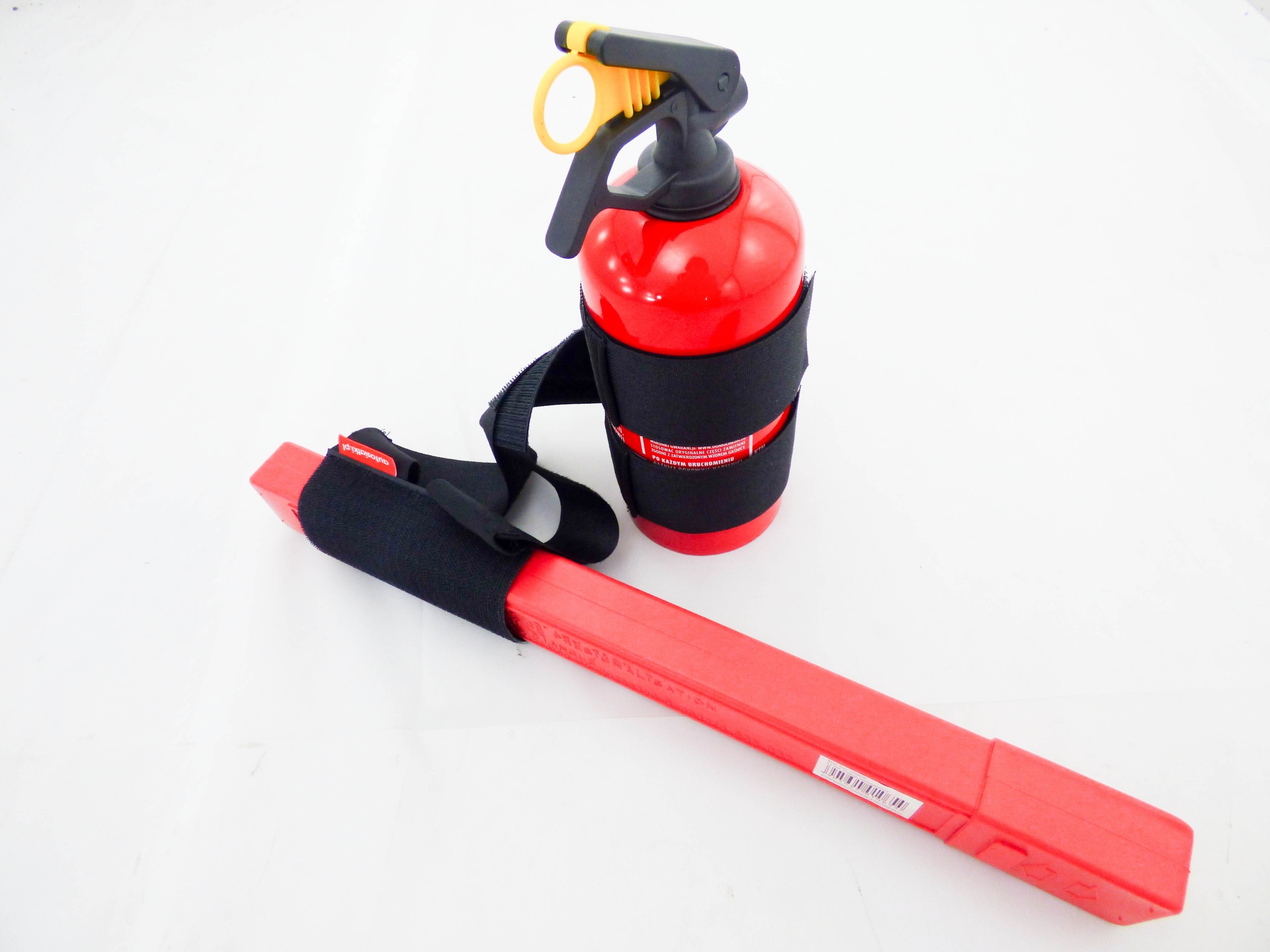 тримач для вогнегасника та кріплення на липучці автомобільного трикутника.