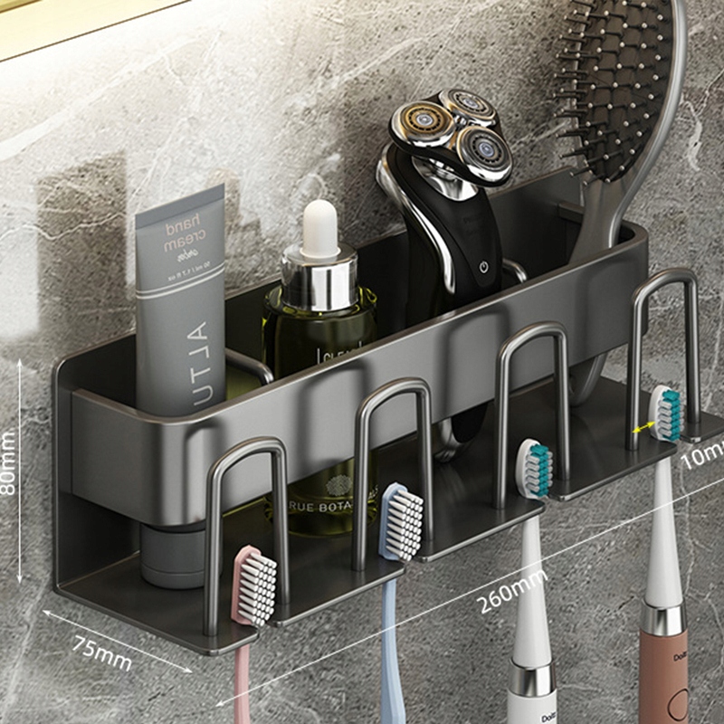 настінна кухоль зубної щітки для промивання рота стендом для гоління, не пробивши алюмінієву алюмінієву космічну підставку для зубної щітки 26x7.5x8 см DXSXW Сірий піаля