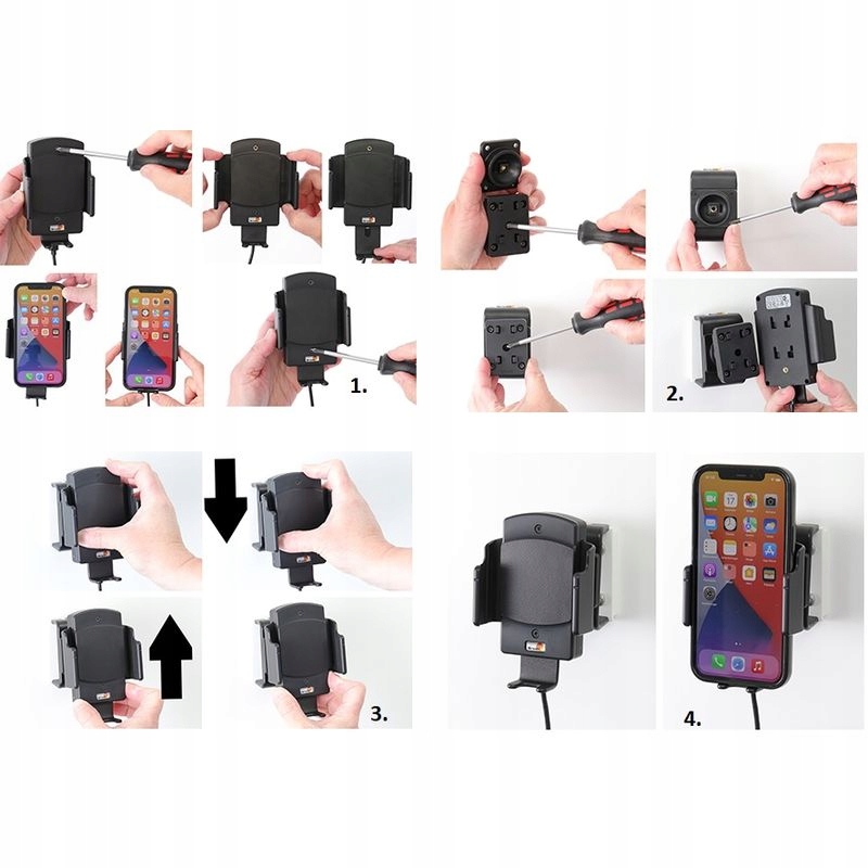Кріпка дуже міцна, телефон в ній не тримається і не вібрує. Тримач має шарнір, який дозволяє легко повертати телефон горизонтальне або вертикальне положення або будь-коли нахиліть його. Ручка Приєднується до Brodit ProClip.