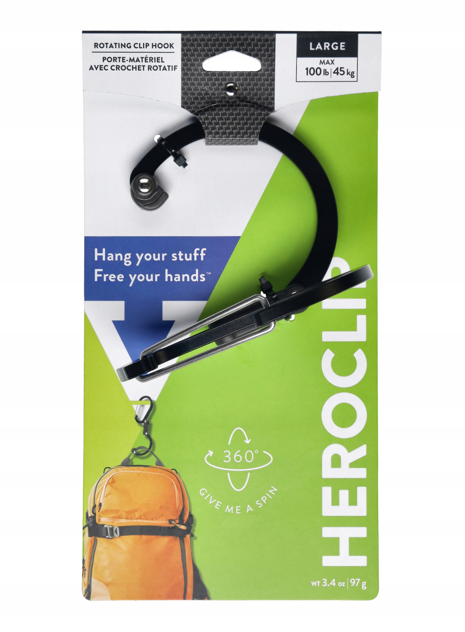 Тримач GearAid HEROCLIP® L походить із нової лінії, розробленої для підвищення функціональності під час подорожі чи кемпінгу. Це також найбільший і найміцніший аксесуар із характерною структурою, що нагадує карабін, і використовується для підвішування більш важкого обладнання, такого як велосипеди, байдарки, ліхтарі чи туристичні холодильники.