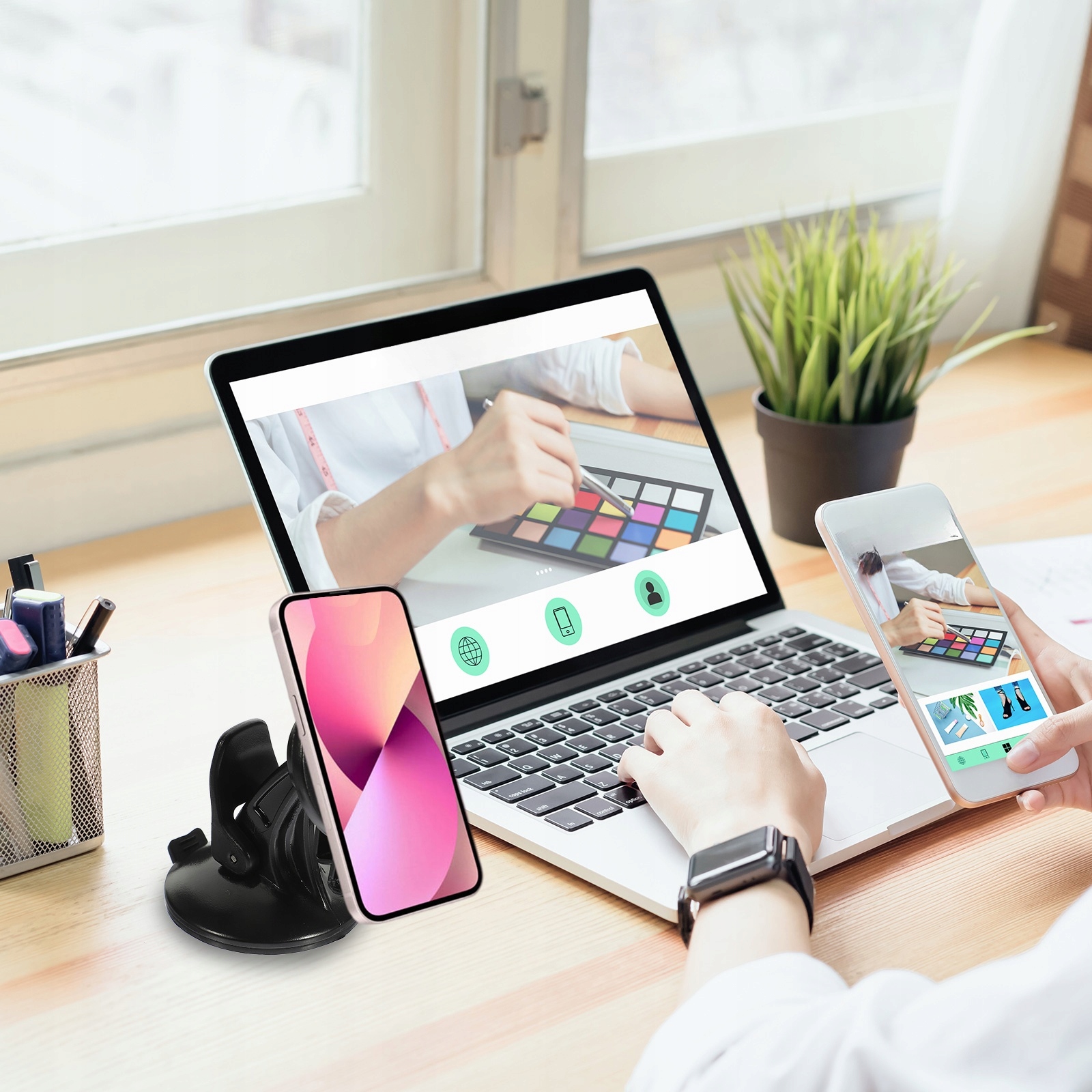 ✅ Автомобільний тримач із присоскою для GPS.