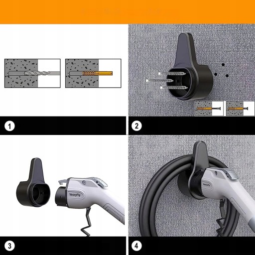 ✔️ 【Сумісність】: тримач кабелю для заряджання сумісний з усіма підставками для заряджання електромобілів, які відповідають стандартам IEC типу 2. Наші тримачі кабелю призначені для настінного кріплення.