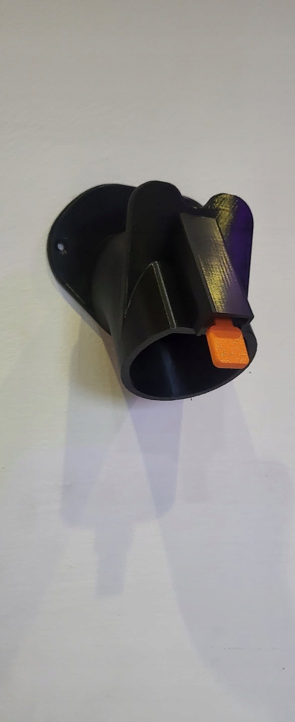 Чорна ручка з помаранчевим елементом засувки