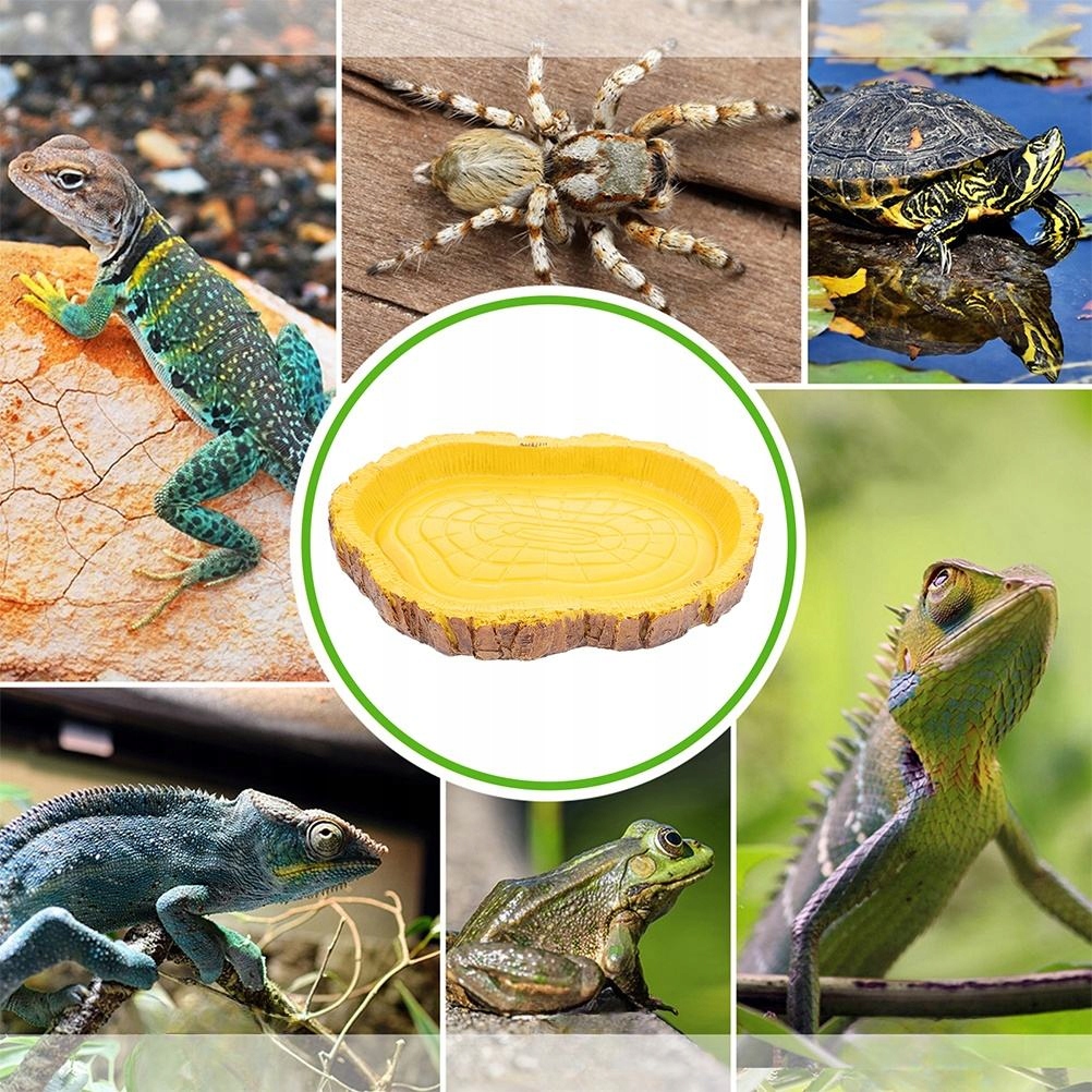✅Блюдо для води для рептилій виготовлено зі смоли високої щільності, має гарний дизайн, непористий, міцний і безпечний. Годувати своїх домашніх рептилій безпечно. Гладка поверхня може ефективно запобігти втечі їжі для рептилій і завданню шкоди, полегшуючи годування та зберігаючи довкілля чистим.