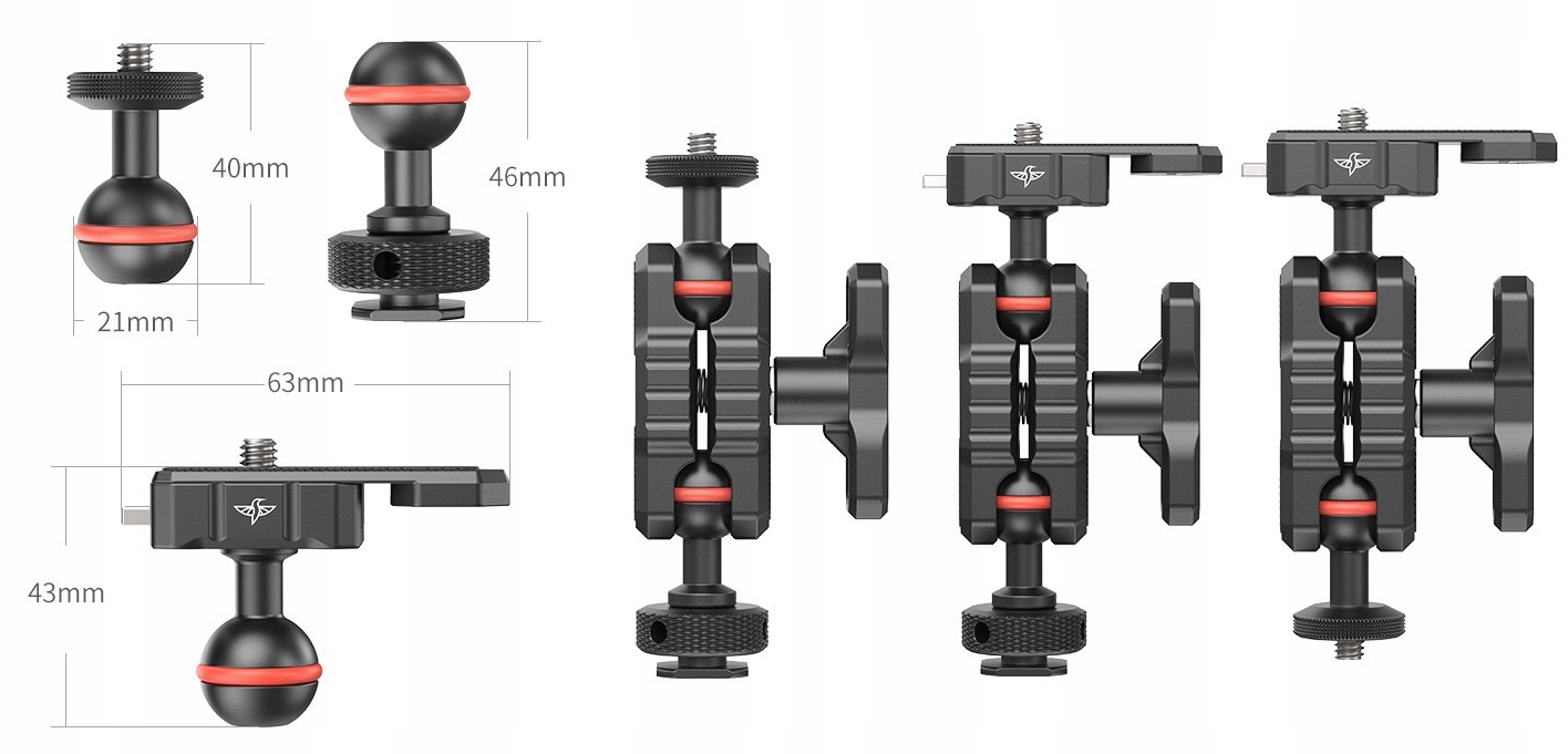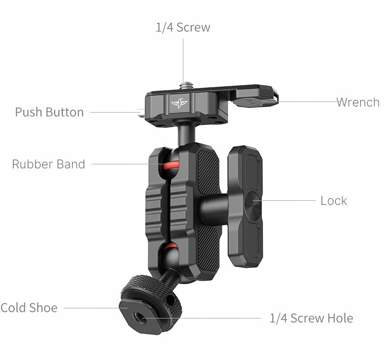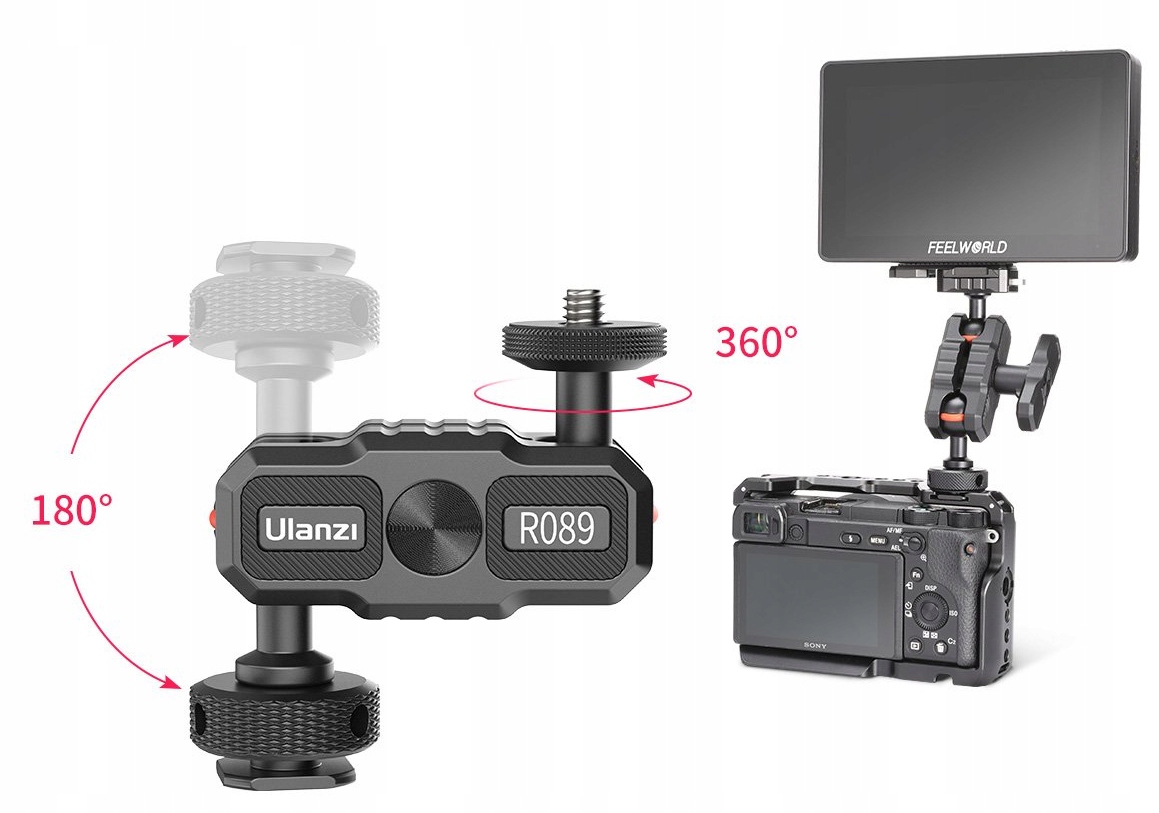 Головка ідеально підходить для встановлення РК-моніторів/світлодіодних ламп на камерах, відеокамерах, підвісах, штативах та інших пристроях за допомогою стандартної монтажної різьби 1/4" або лапки ISO.