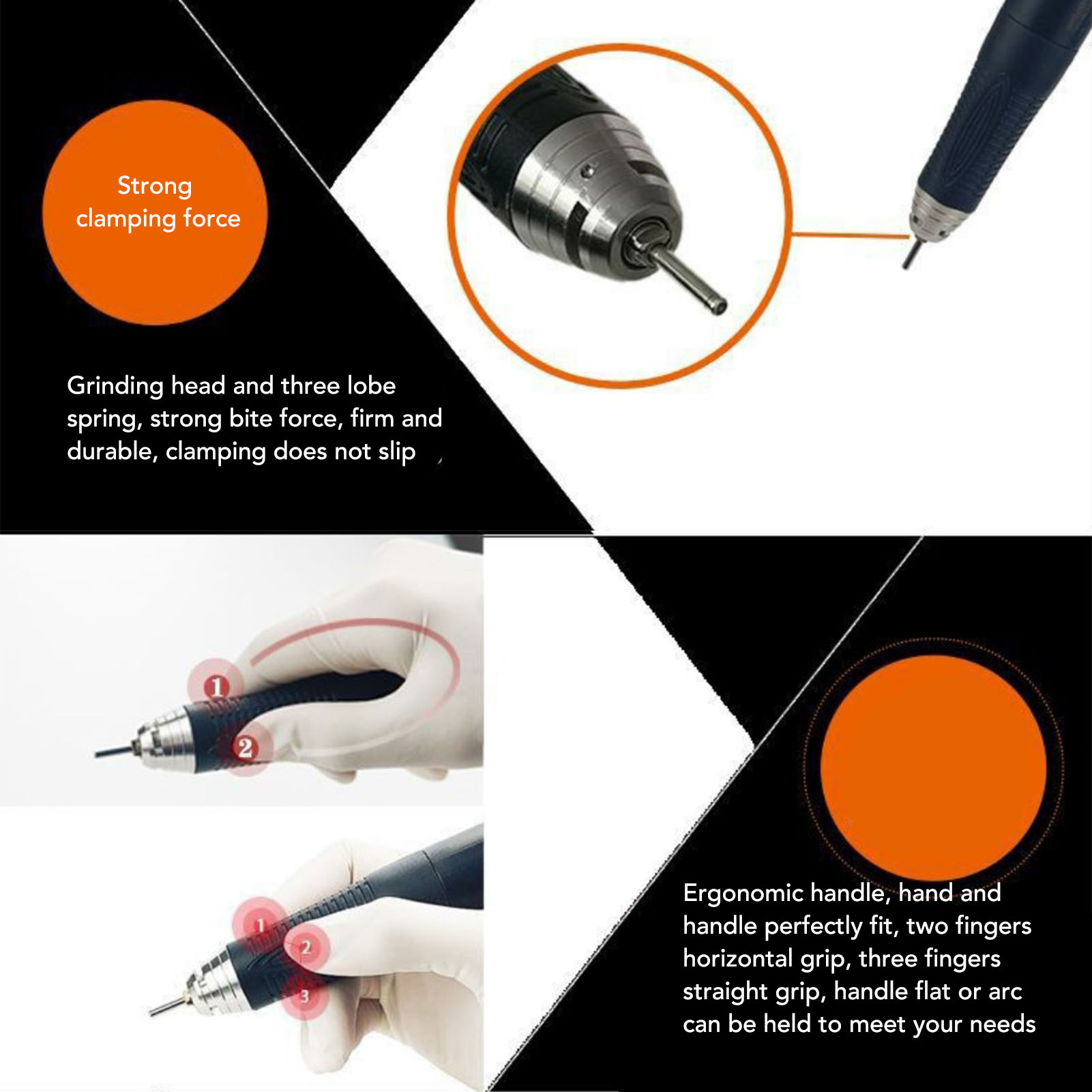 7. СИЛЬНА СИЛА ЗАЖИМУ: безщітковий мікромоторний тримач із шліфувальною головкою та трьома клапанними пружинами, має великий укус, міцний та довговічний, затискач не ковзає