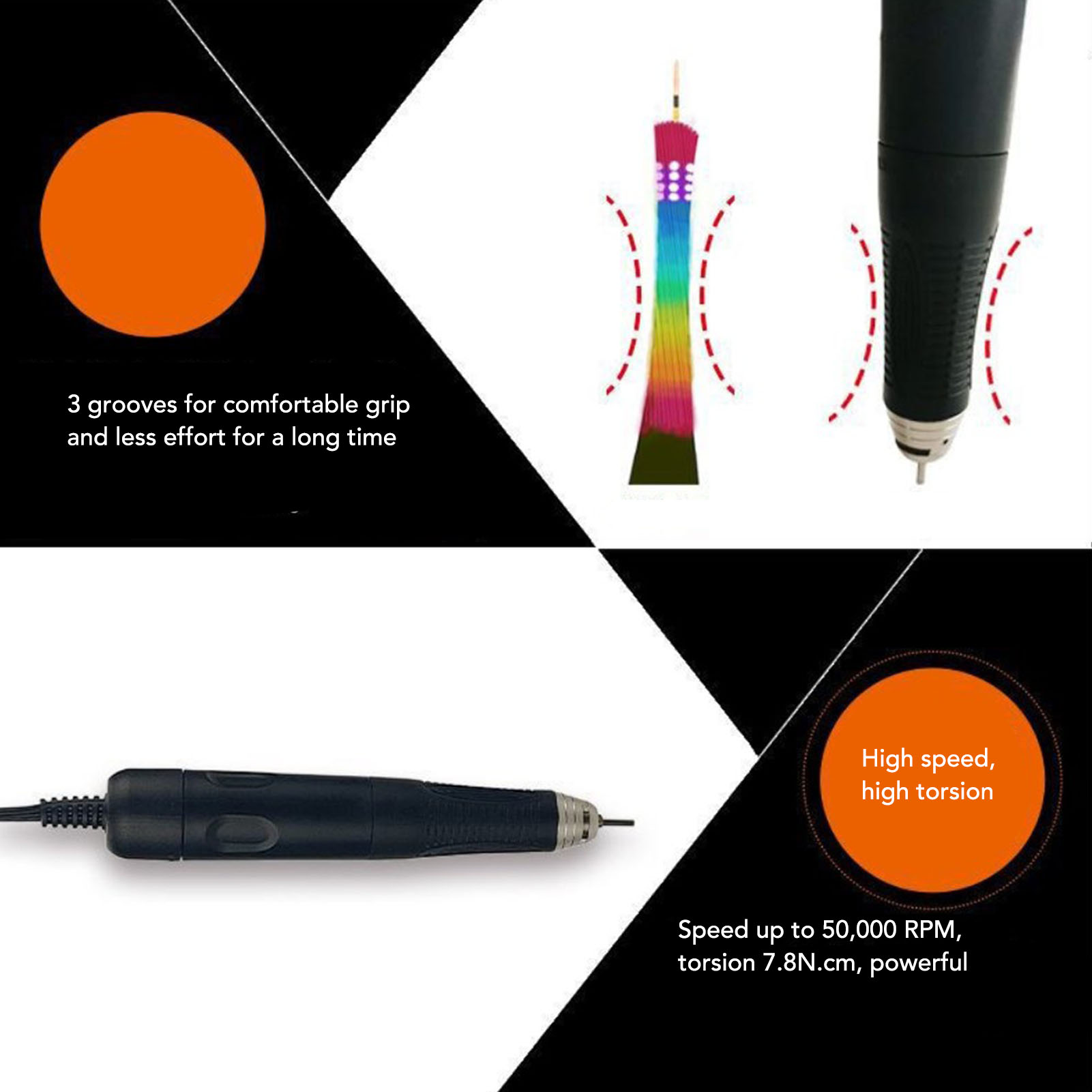5. СТАБІЛЬНА РОБОТА: тримач мікромотора забезпечує хорошу внутрішню циркуляцію повітря, що робить роботу більш стабільною, з низьким рівнем вібрації та шуму.