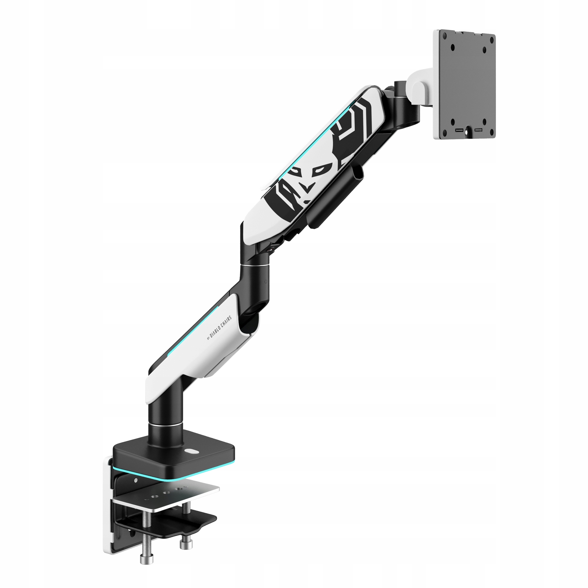Привабливий стиль, підкреслений характерним логотипом Diablo Chairs, надасть вашому стенду унікального вигляду. Поєднання елементів з високоякісного пластику та міцного металу робить тримач монітора феноменальним і надзвичайно міцним. Максимальна вантажопідйомність до 20 кг.