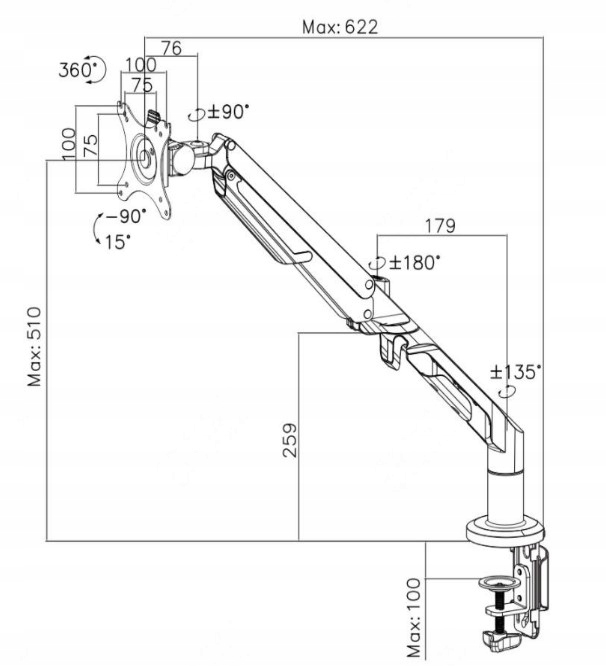 Максимальна довжина плеча 622 мм.