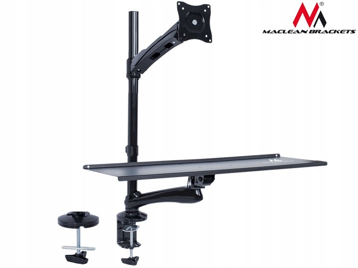 Зміна положення з сидячого на стояче забезпечує великий комфорт під час роботи та оптимізує ергономіку. Кронштейн виготовлений з високоякісного алюмінію - оснащений міцним кріпильним затискачем, який дозволяє кріпити його до стільниці або інших плоских поверхонь. Ідеально підходить для використання, серед іншого: в офісі та вдома - без свердління.