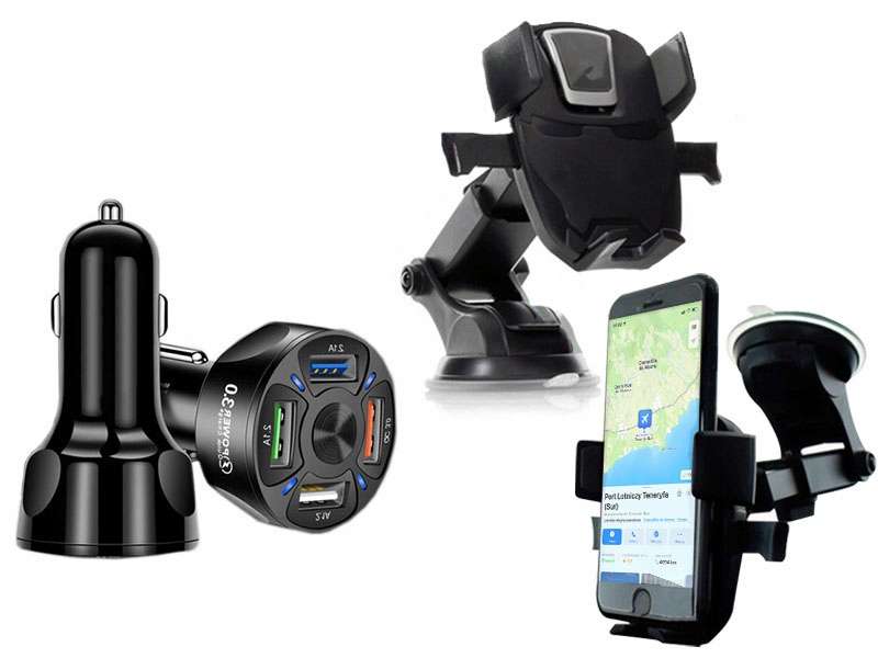 Тримач на склі WEBSKI чорний + Автомобільний зарядний пристрій Webski 7000 mA USB