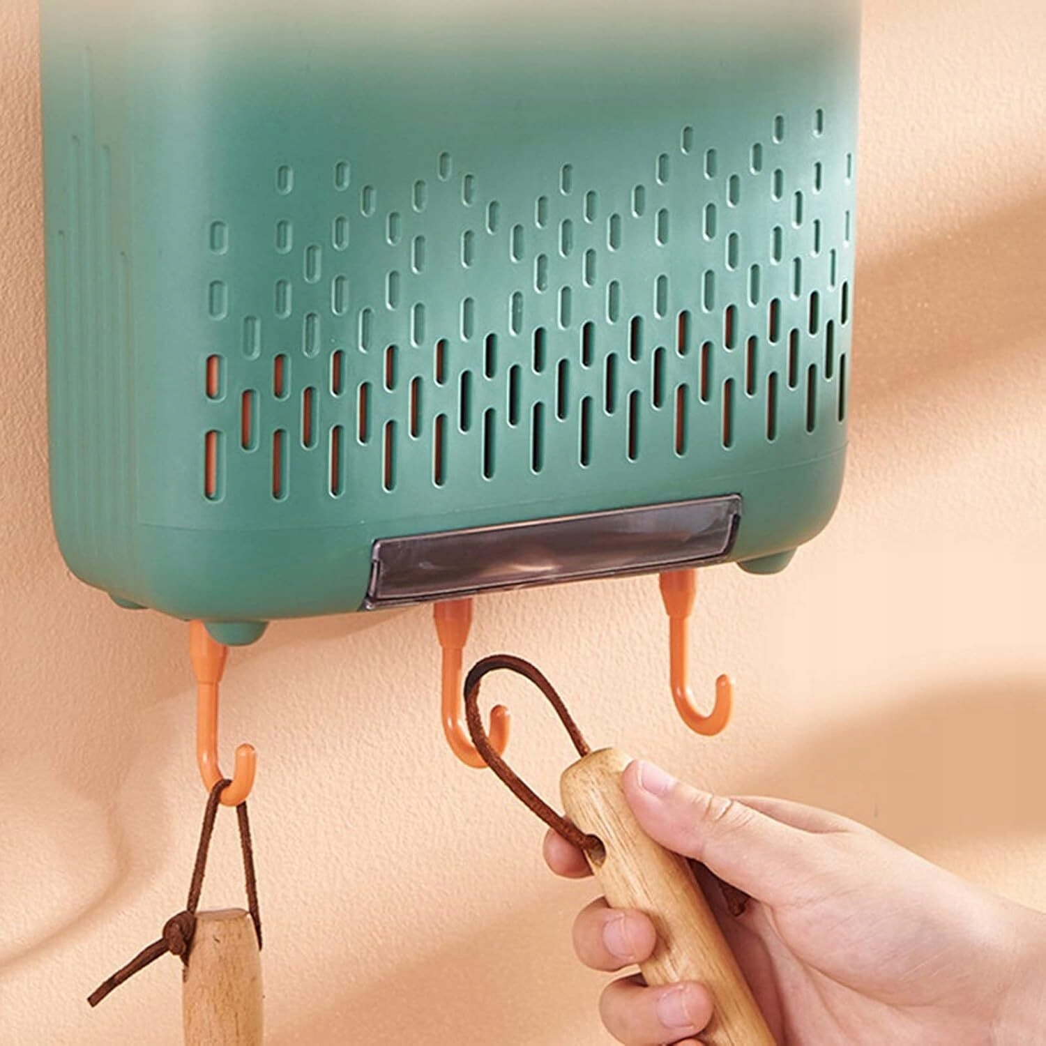 Зберігайте все, від шпателів до ковду, на багатьох гачках цієї підвісної ручки, забезпечуючи легкий доступ до всього кухонного начиння під час приготування їжі.