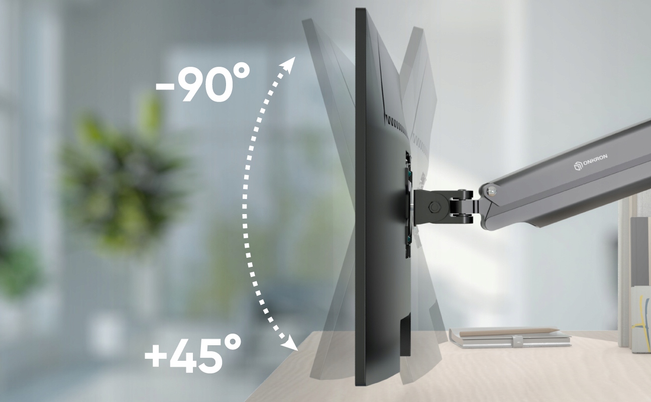 Кожне плече тримача ONKRON G200-B дозволяє розташувати монітор окремо. Екрани можна нахиляти від -90° до +45°, повертати на 180° і повертати на 360°. Діапазон регулювання висоти від 170 до 505 мм і висота рукоятки до 615 мм дозволяють налаштувати екрани відповідно до ваших індивідуальних потреб. Ця свобода робить власник ідеальним для багатозадачності, аналізу даних, творчих проектів і онлайн-трансляцій.