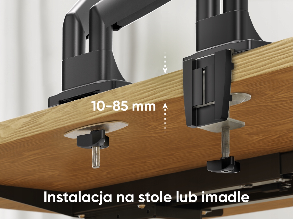 Складання тримача G200-B відбувається швидко та просто. У комплект входить повний комплект монтажних аксесуарів, сумісних з моніторами відомих виробників. Тримач можна прикріпити за допомогою настільного затискача або через отвір у стільниці. Крім того, інтегрована система управління кабелями дозволяє приховати дроти, що надає підставці акуратний і професійний вигляд.