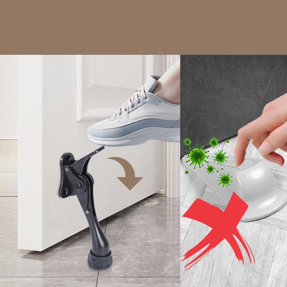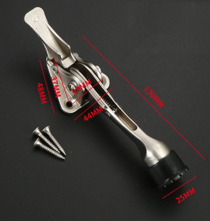 Вам набридло відкривати двері з багатьма речами в руках? З дверним упором просто наступіть на дверний упор, і він миттєво відкриється. Не потрібно піднімати його вручну. Дверний упор буде прикріплено до дверей, і його можна зачепити та від’єднати однією ногою.