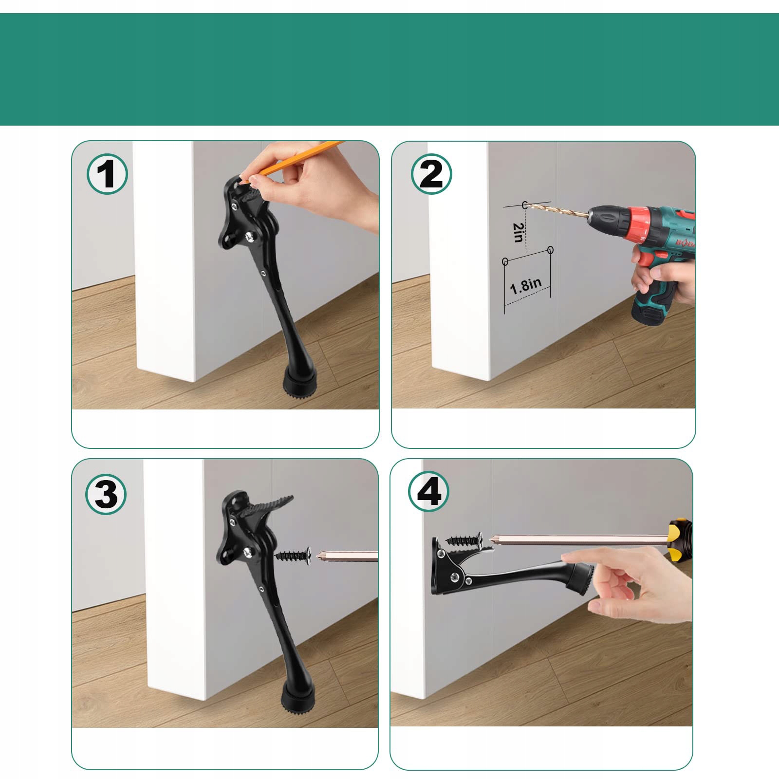 Металевий стопор із оновленим міцним гумовим зубчастим наконечником може ефективно зупинити двері та утримувати двері відкритими, уникаючи надокучливого хлопкання дверей. Door Proportion може приклеюватися до будь-яких поверхонь, таких як деревина, бетон, плитка, килими.