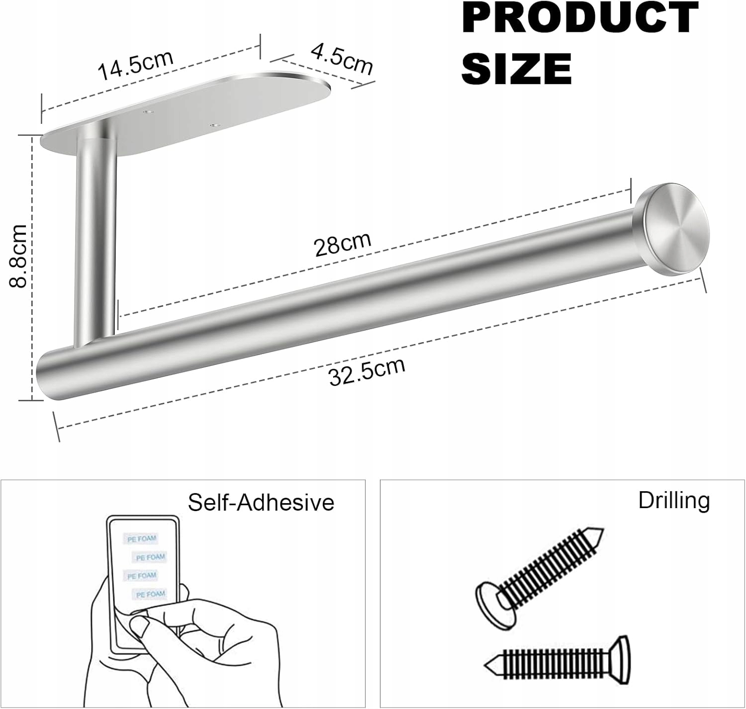 Чудово підходить для паперових рушників, алюмінієвої фольги, харчової плівки, ганчірок та інших аксесуарів.
