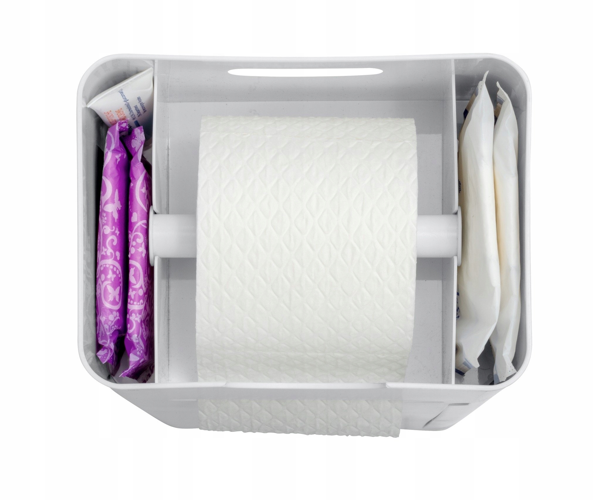 - Аксесуар поєднує в собі шість функцій: зберігає використаний папір, зберігає запасний папір і щітку для чищення, має два відділення для засобів особистої гігієни та полицю, на яку можна покласти телефон,