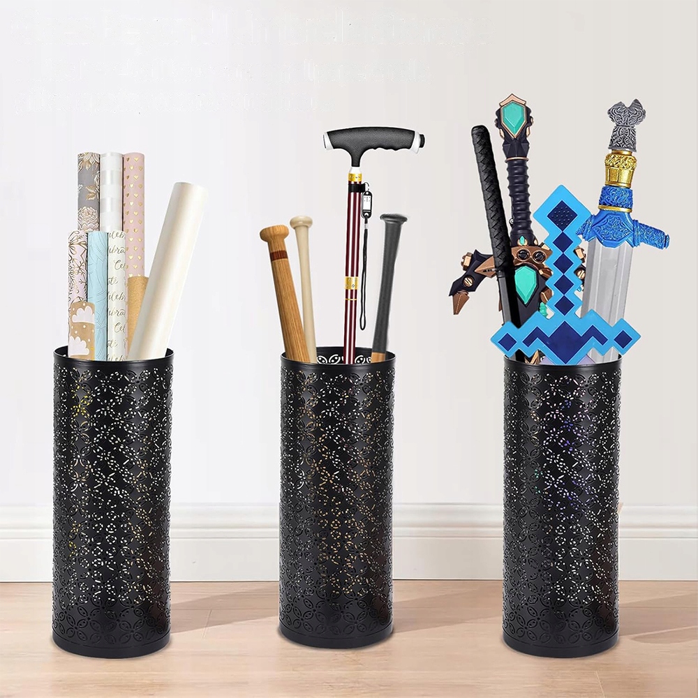 🪣Ця кругла металева підставка для парасольок ідеально підходить для розміщення в коридорах, закритих або відкритих входах, не займаючи багато місця. Він також має стійке до іржі покриття для довговічності.