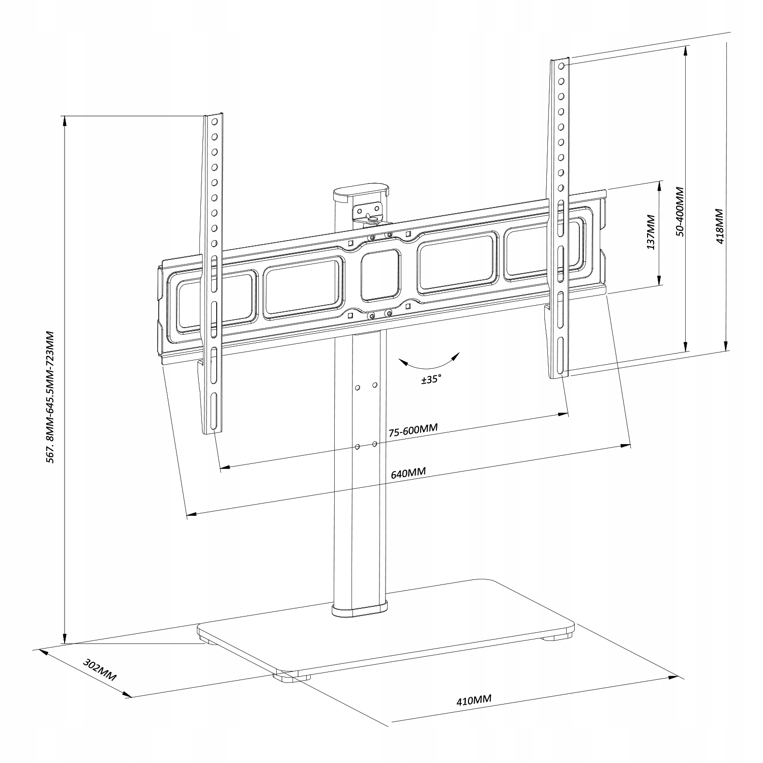 Елегантна основа із загартованого скла забезпечує стабільність і довговічністьтелевізорів і моніторів вагою до 40 кг.