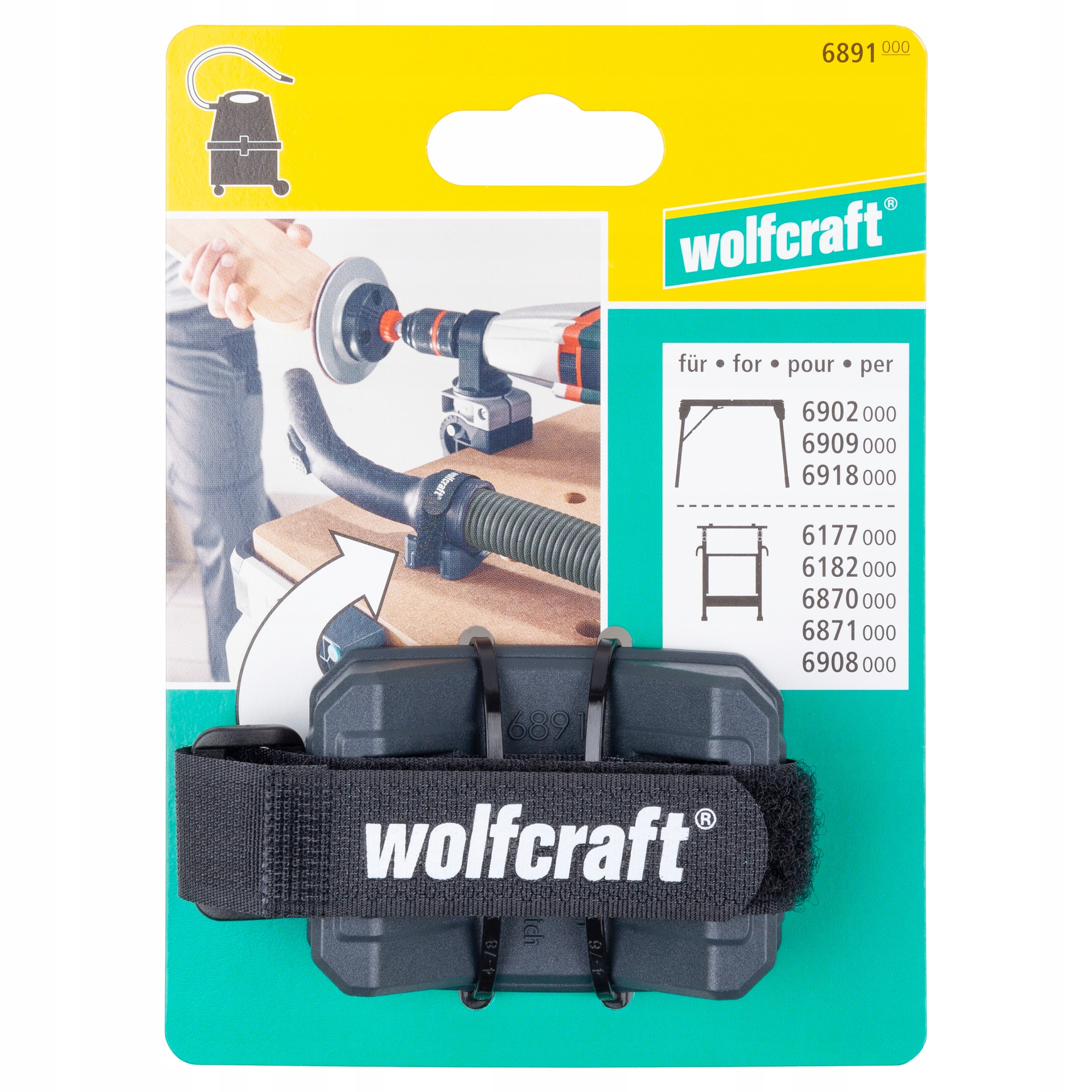 Вставна система підходить для всіх отворів 20 мм, наприклад, у столах Wolfcraft серії MASTER. Просто вставте ручку, помістіть шланг пилососа в пластикову напрямну та прикріпіть її за допомогою липучки.