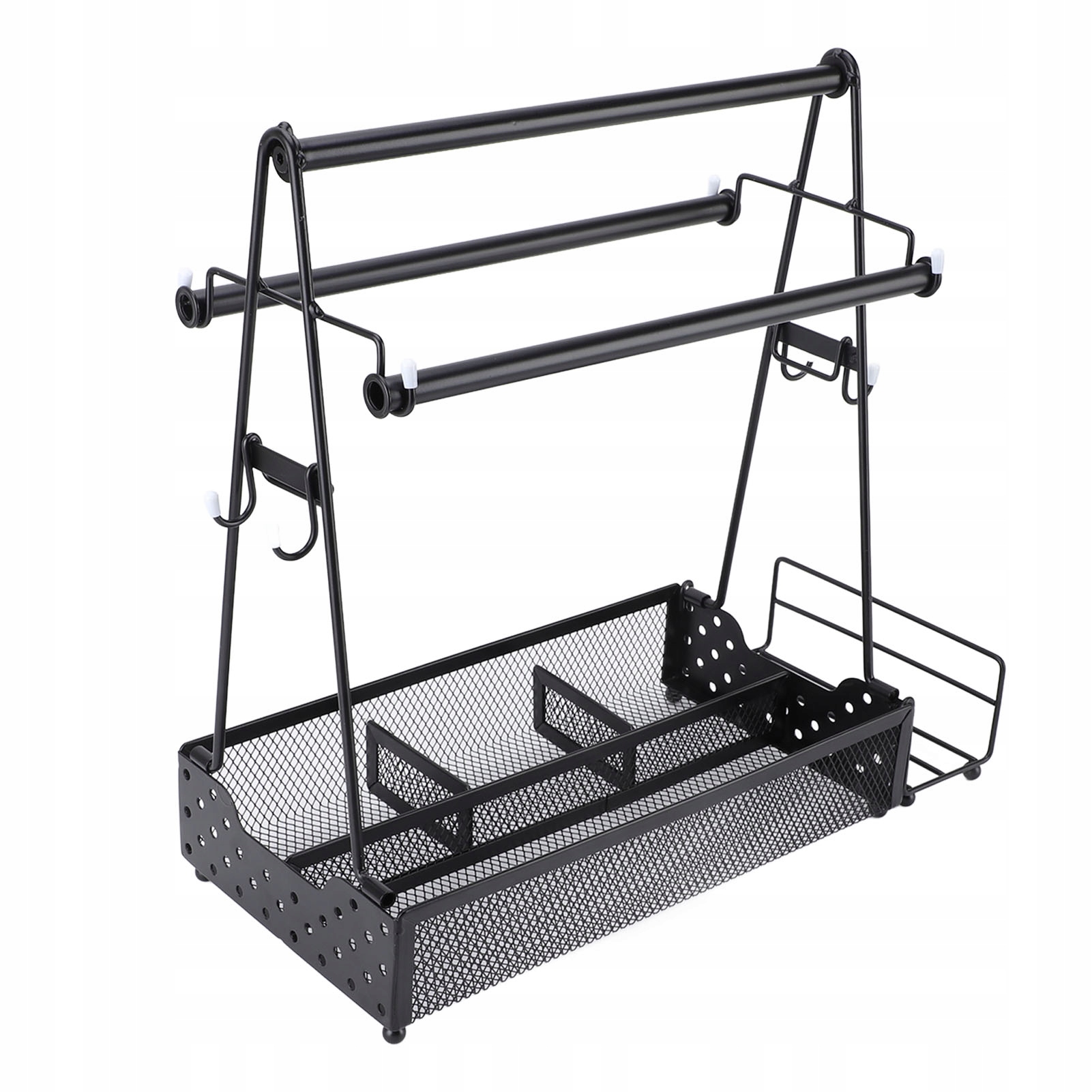 2. Зберігання: у нашому кошику для гриля, оснащеному 4 відділеннями, 2 тримачами для паперових рушників і знімною підставкою для серветок, можна легко зберігати спеції для гриля, спеції для подорожей, тарілки для кемпінгу, посуд, серветки, інструменти для гриля, ложки, чашки тощо.