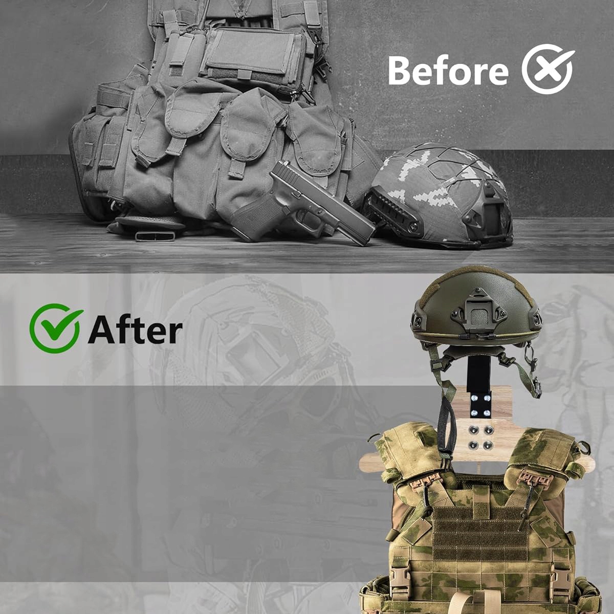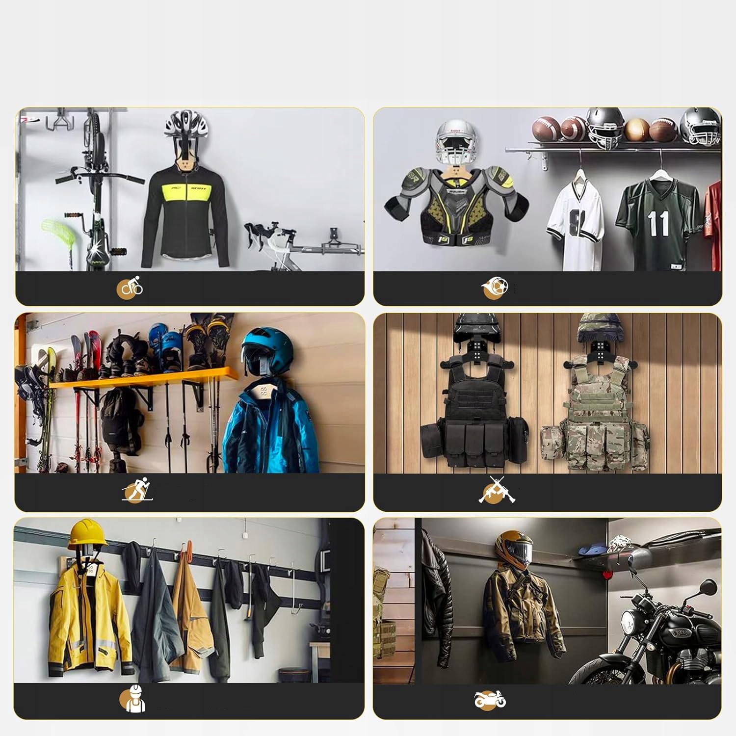 ➡ 【Оптимізована організація】: Багатофункціональний тримач для стін для мотоцикла ідеально підходить для зберігання тактичного обладнання, таких як шоломи, жилети, смуги та рукавички, а також t -сорочки, рукавички та клавіші. Він також підходить для зберігання футбольного або гірськолижного обладнання, таких як шоломи та одяг. Універсальне рішення для зберігання всього обладнання, яке в той же час економить цінну поверхню.