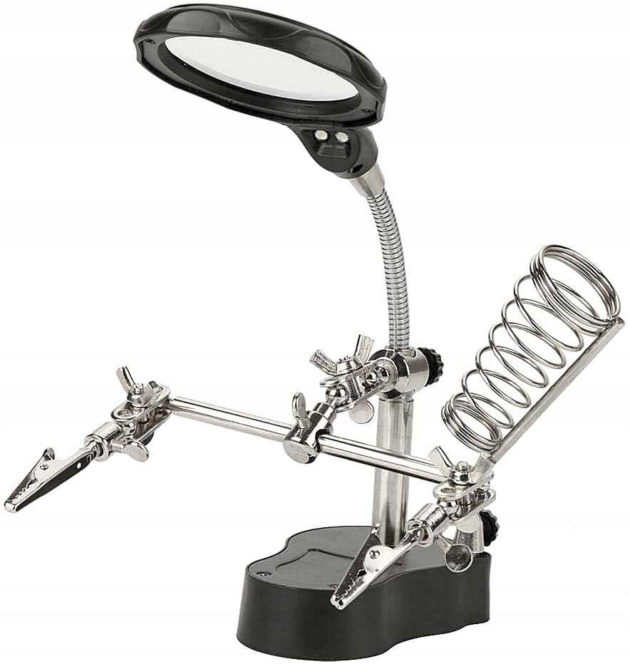 Збільшувальне скло діаметром 62 мм забезпечує 3,5-кратне збільшення, а додаткові лінзи дозволяють працювати зі збільшенням до 12-кратного. Вбудоване світлодіодне освітлення з двома діодами ефективно освітлює робочу зону, що надзвичайно корисно при роботі в умовах обмеженого освітлення.