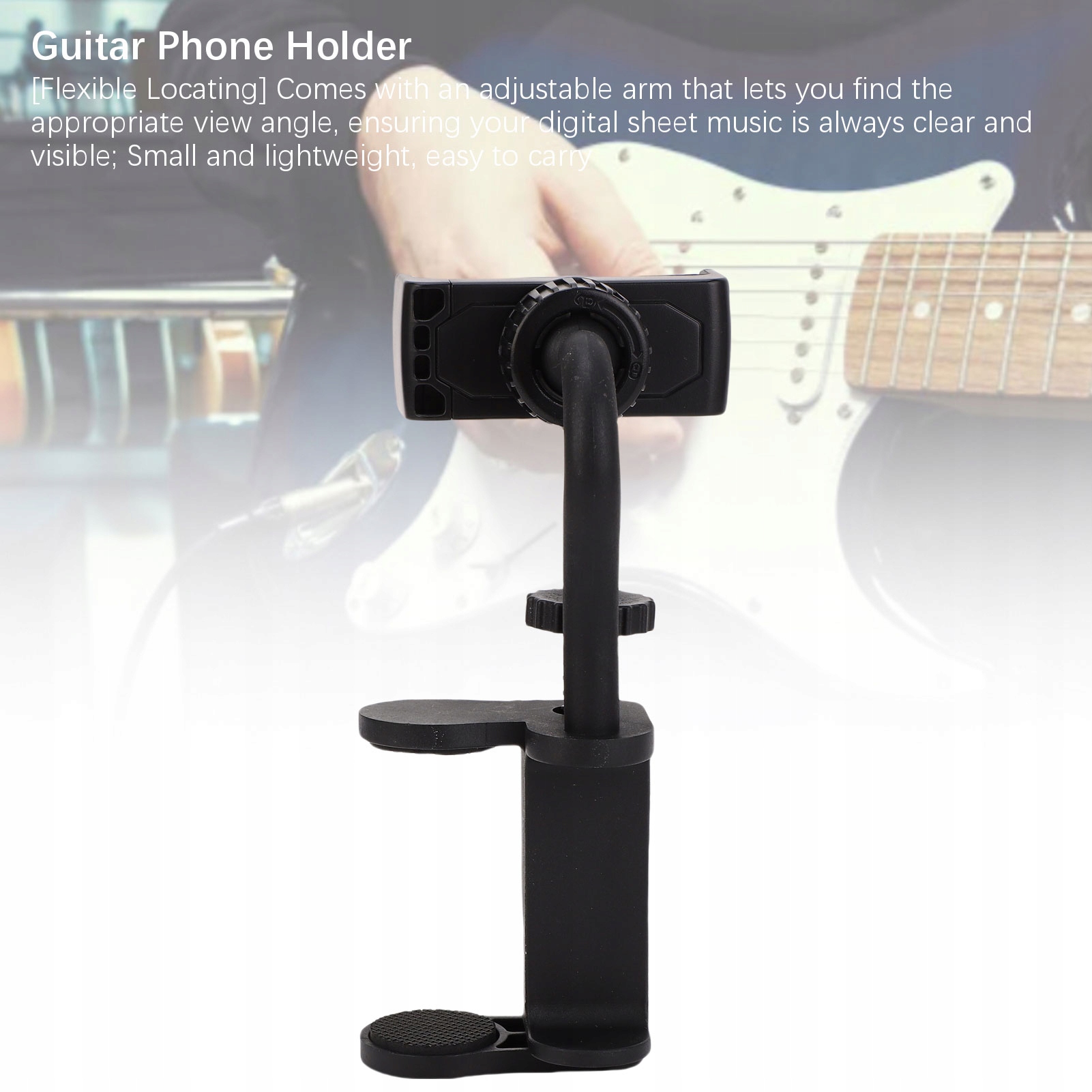 Функція:1. [Універсальний тримач для телефону] Цей тримач для смартфона можна прикріпити до шиї класичних гітар, акустичних гітар, бас-гітар і укулеле, і він є практичним вибором для відображення цифрової музичної партитури