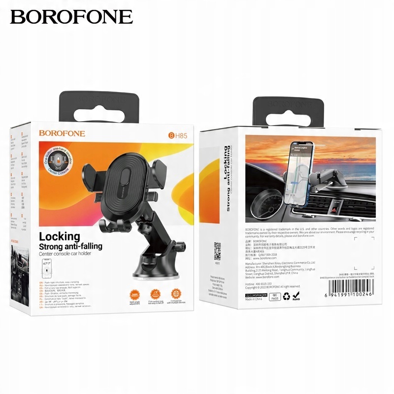 BOROFONE BH85 Experience автомобільний затискний тримач для телефону / на телефоні, призначений для монтажу на панелі приладів / кабіні / консолі / вікні автомобіля, оснащений регульованим кронштейном, що дає необмежені можливості регулювання та адаптації до власних потреб водія, і кульовим шарніром, встановленим за допомогою силіконової присоски з фіксатором, призначений для мобільних телефонів / смартфонів або планшетів вагою не більше 0,5 кг і розміром дисплея від 4,5 до 7 дюймів. Ручка також має регульовані нижні ніжки.