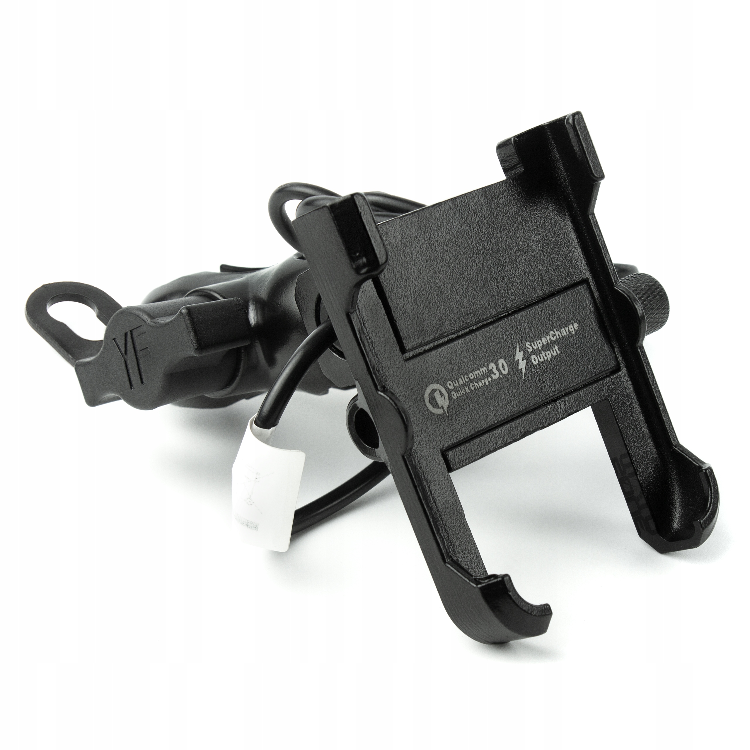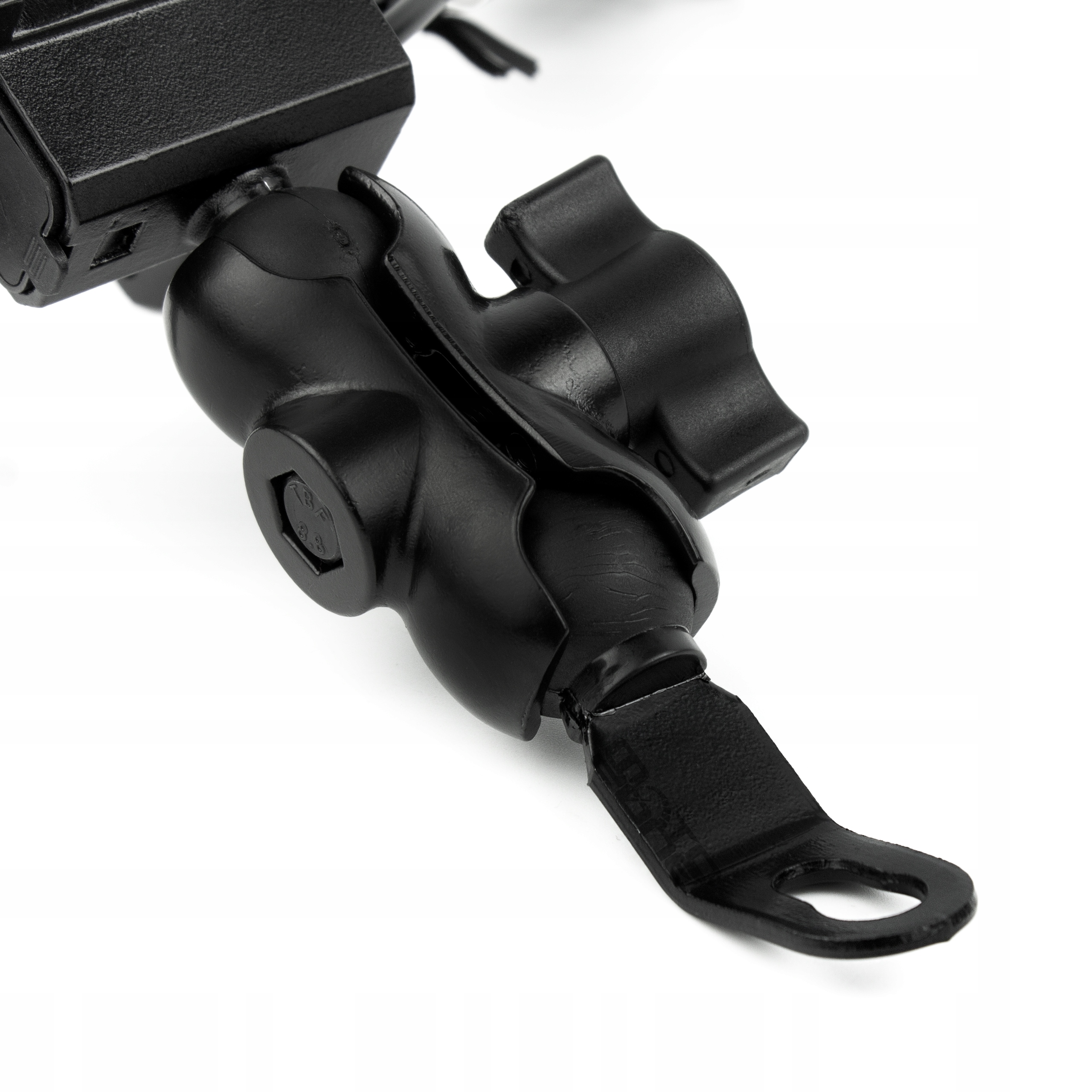 Тримач оснащений незалежним USB-роз'ємом (5В) , 2A). Це стане в нагоді для зарядки телефону, навігації по домофону мотоцикла, mp3 і т.д. USB-роз'єм також має перемикач, завдяки якому ми можемо в будь-який момент вимкнути джерело зарядки. Крім того, він захищений гумовою кришкою,що захищає від затоплення.