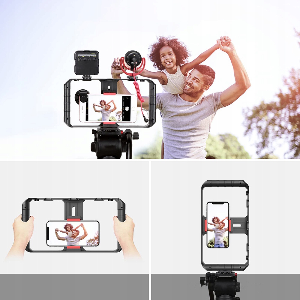 Набір для створення мобільного відео: із 3 стандартними кріпленнями та 2 універсальними різьбами 1/4"-20 ви можете використовувати світлодіодне освітлення та відеомікрофон у цьому наборі. Чудовий інструмент для створення мобільних відео: iPhone Movie Maker.