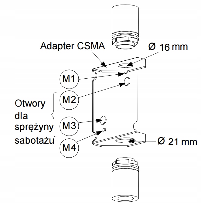- діаметр отворів для труби: 16 або 21 мм