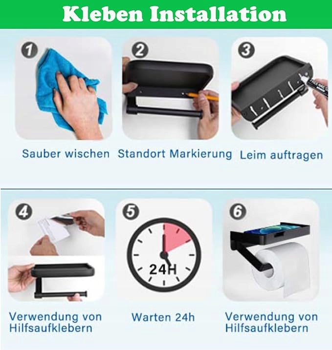 - Можна встановити два типи тримачів туалетного паперу: (1) Новий безслідний клей, свердління не потрібне. (Плоскі стіни, плитка, скло, мармур тощо) (2) Міцне та надійне кріплення гвинтами. (Нерівні стіни, пофарбовані стіни, цементні стіни, шпалери тощо)
