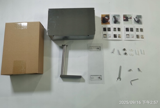 - Тримач туалетного паперу + клейка подушечка + гвинти та інші аксесуари для кріплення
