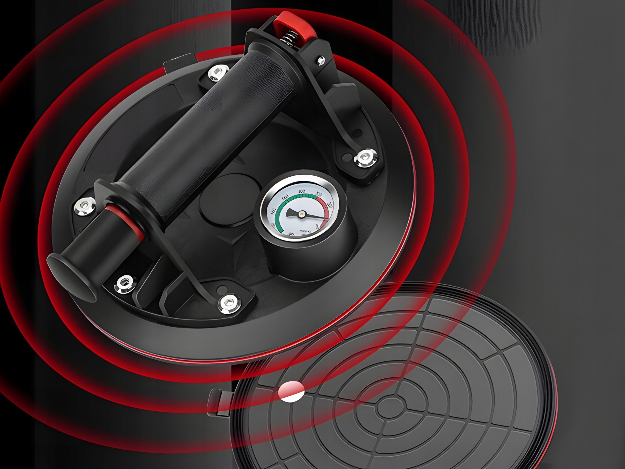 ✅ Ручний насос дозволяє швидко створити вакуум, а червоний випускний клапан дозволяє легко зняти присоску після закінчення роботи. Весь процес простий і не вимагає використання додаткових інструментів.
