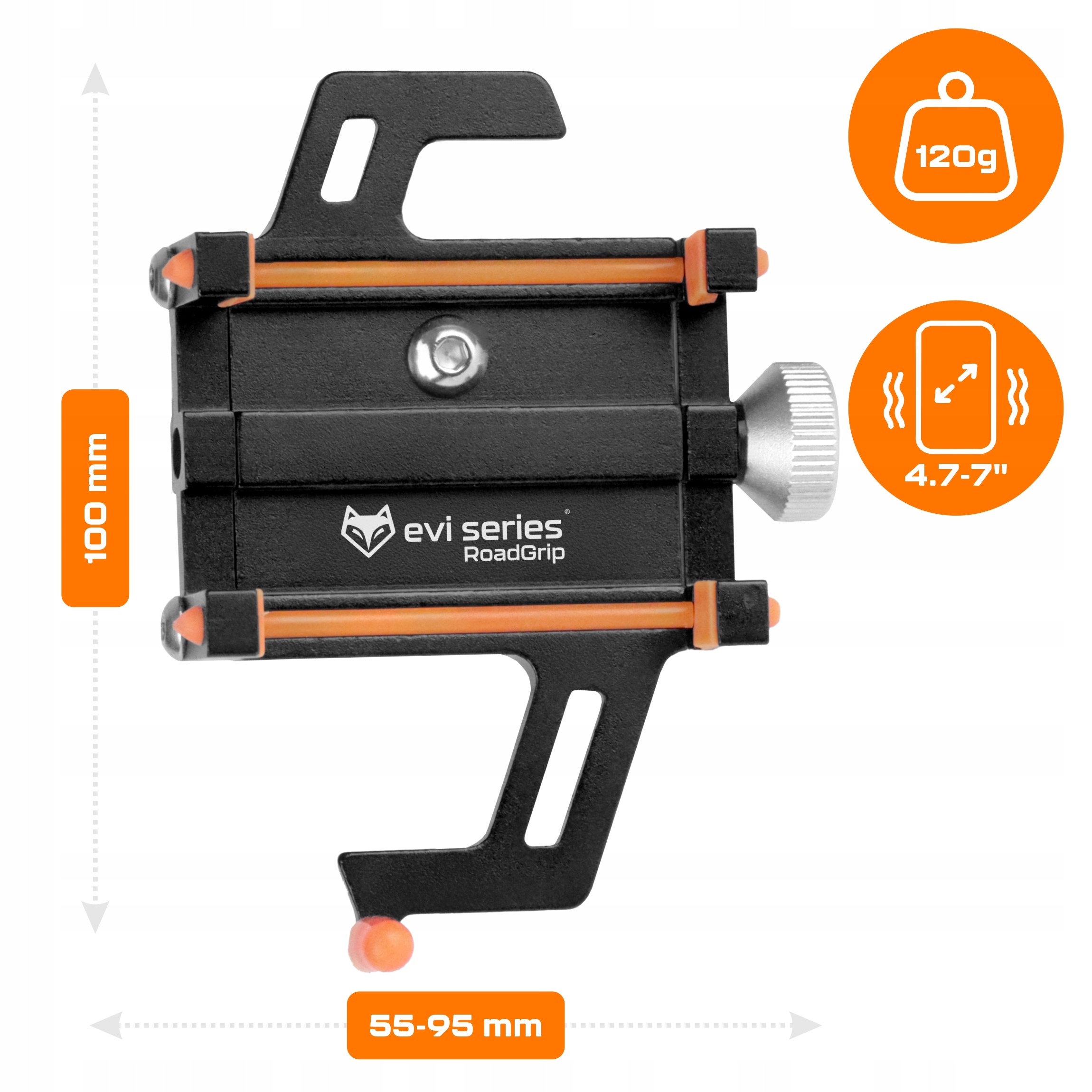 Так, він відповідає всім моделям шириною від 55 до 95 мм (більшість смартфонів, доступних на ринку). Мотоцикл телефону?