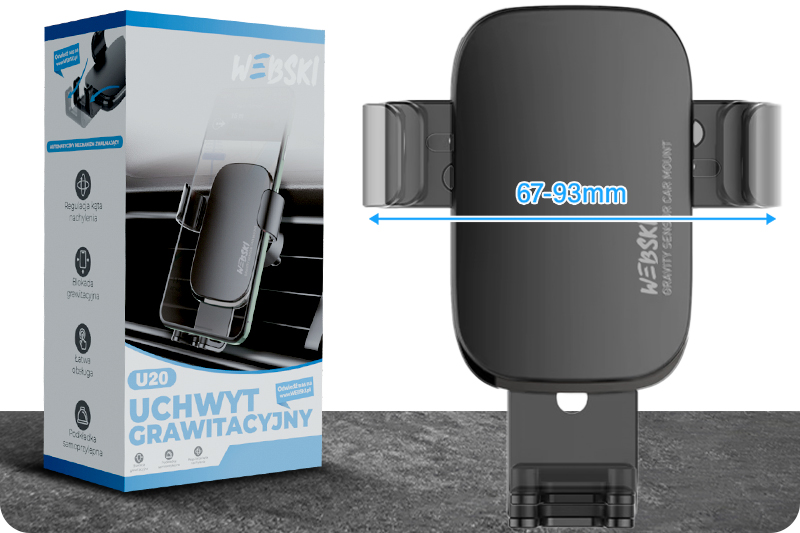 Тримач характеризується гравітаційним механізмом із трьома точками контакту з пристроєм. Просто помістіть телефон у тримач, і він автоматично затягнеться під своєю вагою, надійно зафіксувавши його на місці.