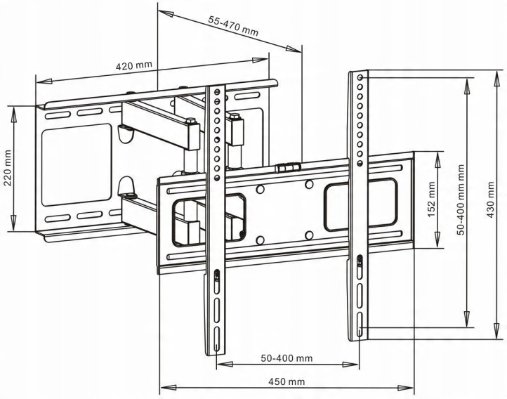 Настінний тримач для монітора SLIM PLAZMA / LCD / TV 23-55" до 45 кг, довге плече 47 см