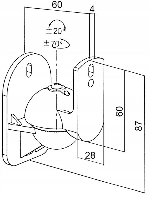 Ручки легко регулюються завдяки шарніру. У центрі кульового шарніра є гвинт, і, послабивши його, можна встановити кронштейн у правильне положення. Кронштейн може нахилятися на +20° і -20° і повертатися на +70° і -70°. Коли кронштейн займе правильне положення, гвинт можна затягнути знову, а динамік залишиться під правильним нахилом і кутом повороту. Кронштейни HTS15 дозволяють повісити колонки на відстані приблизно 60 мм від стіни. Монтажні матеріали включені у вартість, тому ви можете приступати до монтажу відразу.
