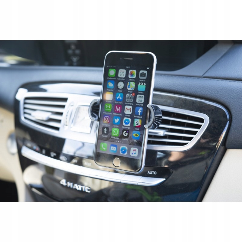 Універсальний тримач для телефону шириною від 52 мм до 86 мм, встановлений у вентиляційному отворі. Можливість регулювання кута та повороту.