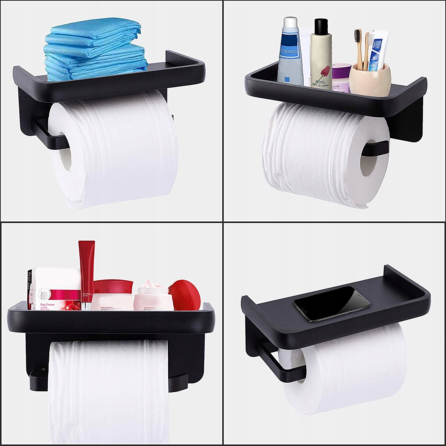 [Один тримач для подвійного використання] Тримач туалетного паперу поєднується з тримачем туалетного паперу та полицею для зберігання, він може не лише містити рулони туалетних паперів, але й дрібні речі, такі як ключі від мобільного телефону, годинники, окуляри, пляшки. тощо
