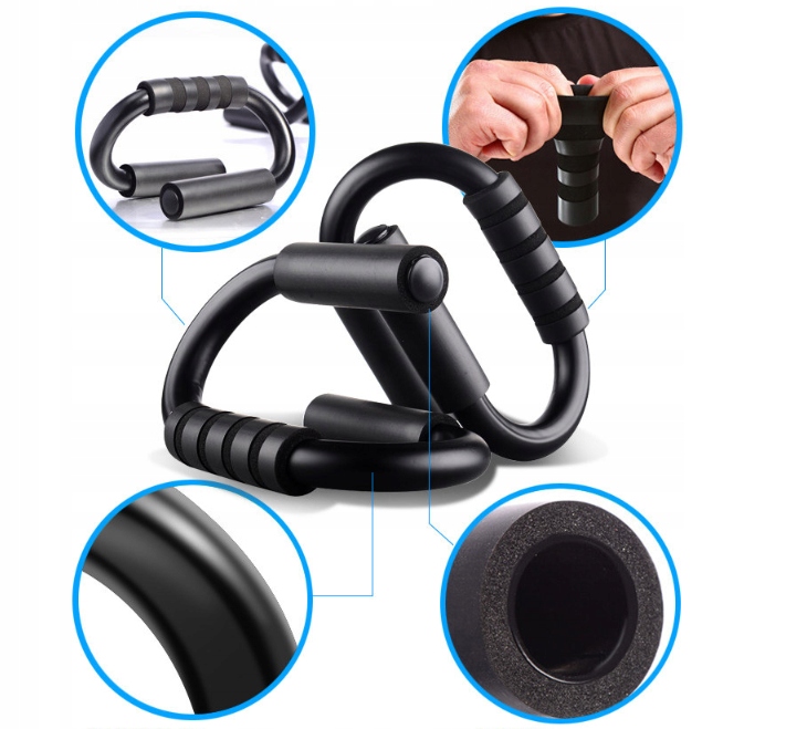 Пристрій для віджимань підходить як жінкам, так і чоловікам. Пристрій складається з двох хромованих сталевих рукояток, покритих гнучким поролоном, що забезпечує стабільну підтримку під час базових вправ. Піна забезпечує комфорт під час тренувань, вбирає зайву вологу та запобігає ковзанню з рук.