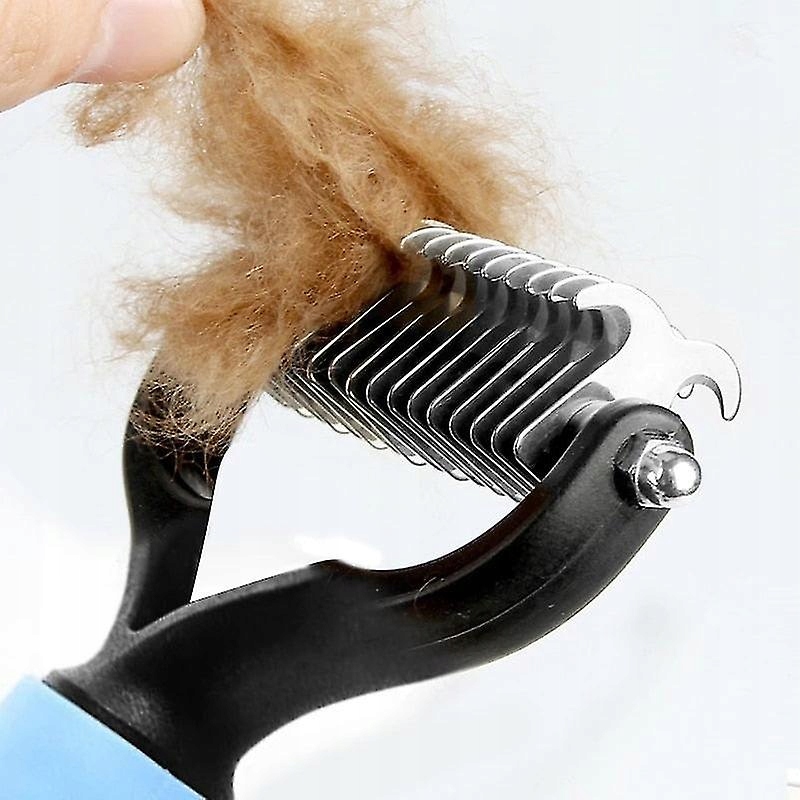 Гребінець із загнутими зубами є найбезпечнішим рішенням для собакипід час видалення старого підшерстя та сплутаного волосся та клубків.