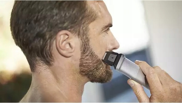 - Використовуйте металевий тример із технологією DualCut без гребінця для бездоганних країв навколо бороди, шиї та лінії росту волосся або підстрижіть волоссядо мінімальної довжини.
