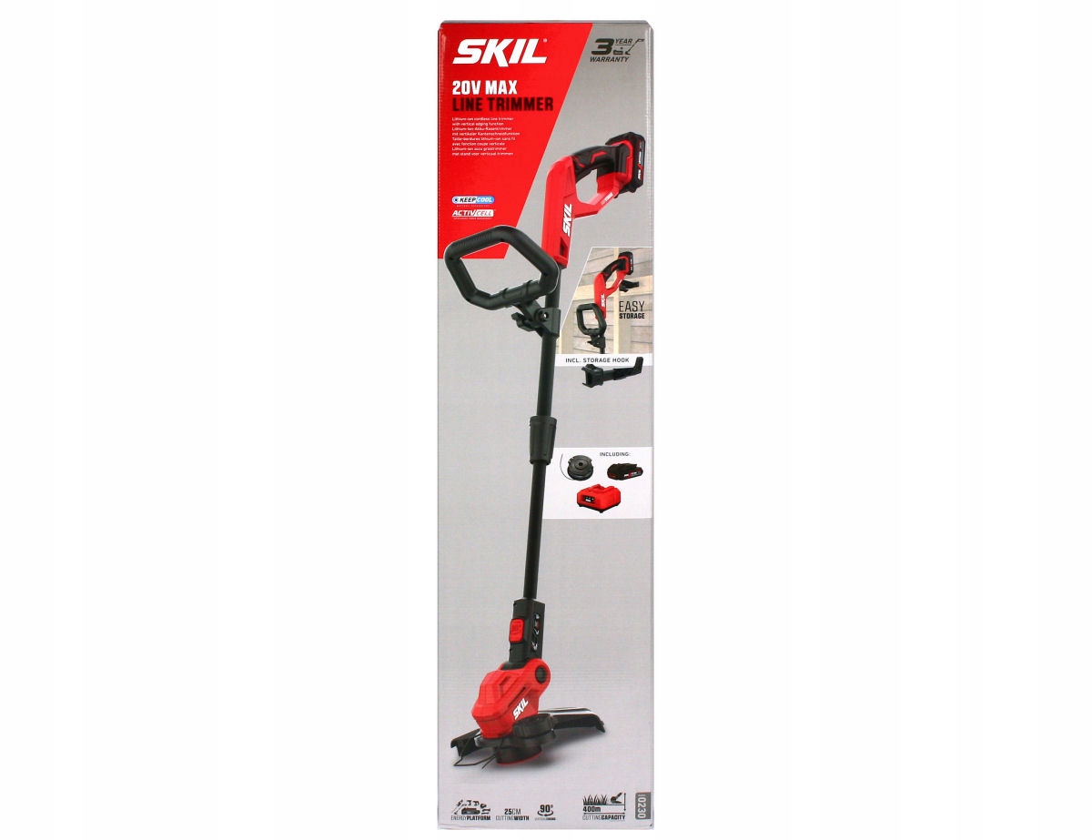 Тример оснащено двигуном останнього покоління 20 В постійного струму від SKIL, що робить тример ідеальним пристроєм для догляду за різними типами газонів.