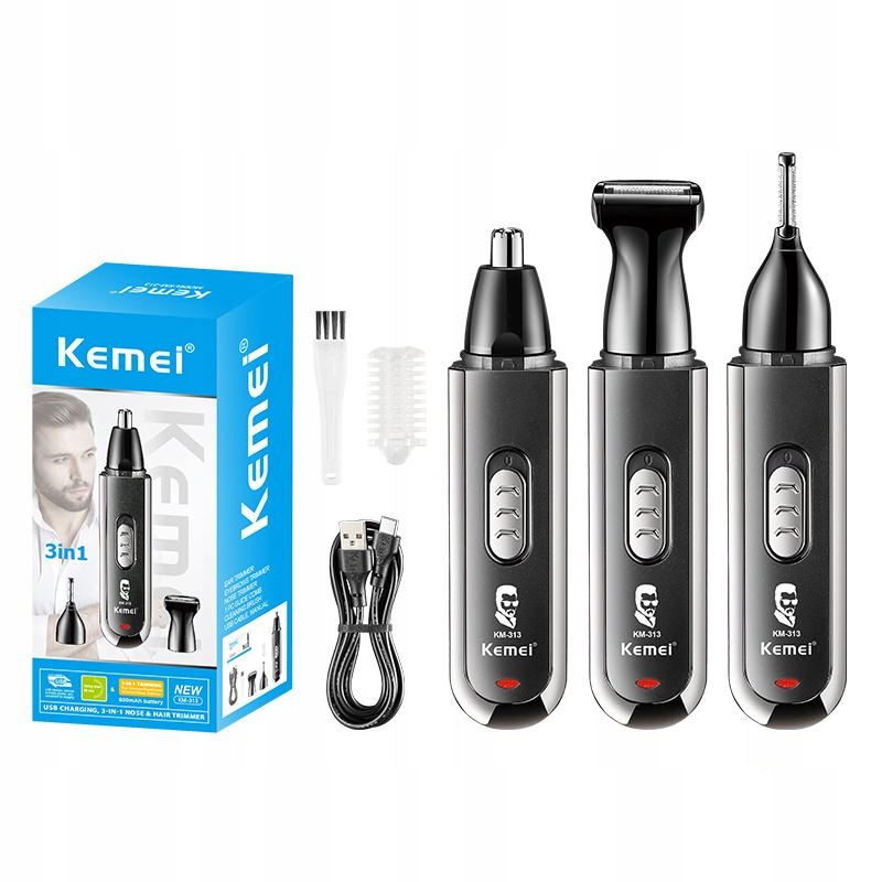 Kemei KM-313 – багатофункціональний тример 3-в-1 для бороди, носа, вух і брів