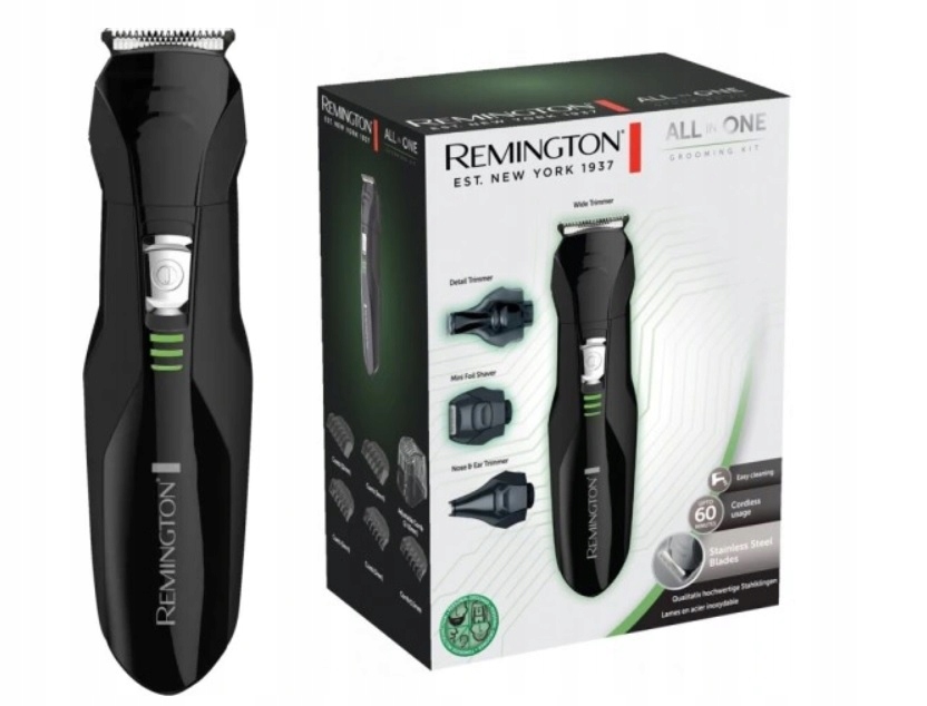 - Набір особистої гігієни Remington PG6024 дозволяє контролювати волосся на обличчі по всьому тілу. Це бездротовий, універсальний набір для догляду за: бородою, бакенбардами, волоссям на голові, грудях, руках і спині. Оснащений 3 змінними наконечниками і 5 насадками різної довжини. Літій-іонний акумулятор забезпечує тривалу роботу та швидке заряджання, дозволяючи 60 хвилин голитися лише після 4 годин заряджання
