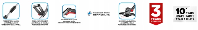 Оснащений з телескопічною, ергономічною і регульованою ручкою (1, 0-1,4 м) дозволяє зручно виконувати роботи в саду або на присадибній ділянці.